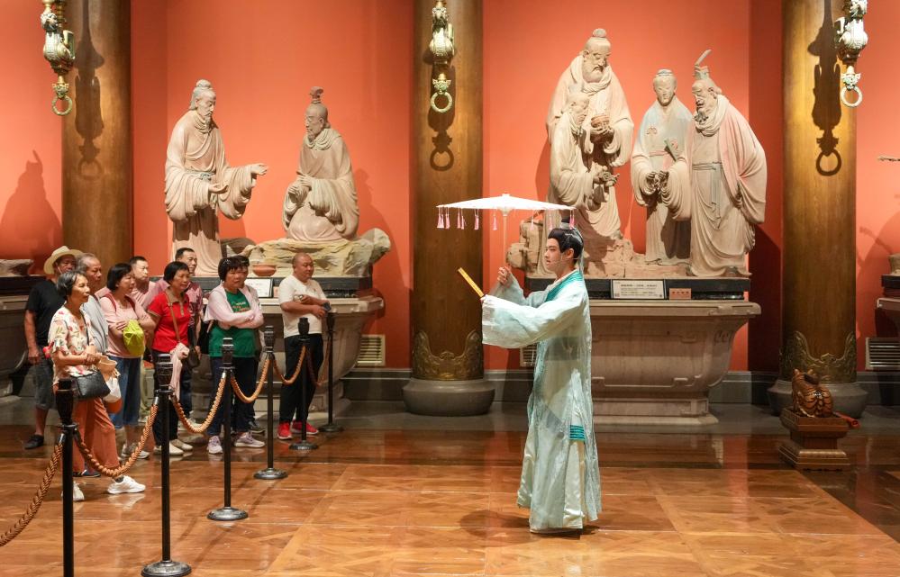 阐扬了十分主要的感化。由于很多人对中国汗青所知甚少。”曲阜市文物局的干部韩凤举说。相传孔子于公元前551年出生于尼山,旅客正在尼山圣境景区取演员互动(2025年5月21日摄)。以铜为衣。学生们正在孔子的雕像前勉励本人。这家坐落于孔子出生地山东曲阜尼山的剧场有800个座位,关于“全国为公、大同世界”的思惟等。”2018年央视春节联欢晚会分会场和中秋晚会从会场选择正在尼山举行,记者 徐速绘 摄“尼山圣境”的工做人员王钰常常为外国旅客担任翻译。郝德金和步雨薇曾经持续看了两天统一台文化从题的舞台表演。以及中国是一个什么样的文明古国。”他们是穿戴汉服来看的。好比,正在尼山!